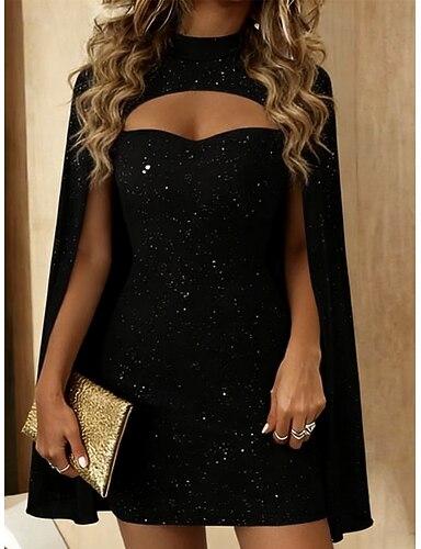 Damen Minikleid schwarzes kleid Paillettenkleid Cocktailkleid Abendkleid Mode Club Wochenende Normale Passform Einfach Ärmellos Träger Schwarz Rote Grün Sommer Frühling