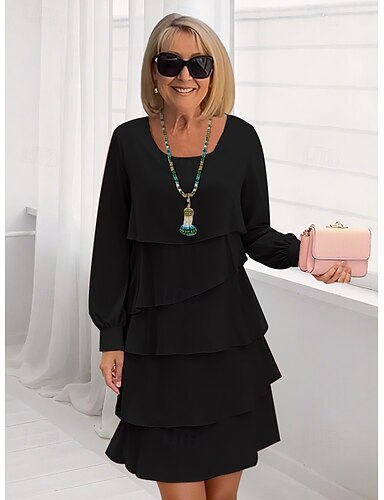 Damen Minikleid Cocktailkleid Kleid für Hochzeitsgäste Chiffonkleid Stufenkleid Elegant Abendgesellschaft Date Ausgehen Normale Passform Einfarbig Kurzarm Rundhalsausschnitt Schwarz Rosa Wein Rote