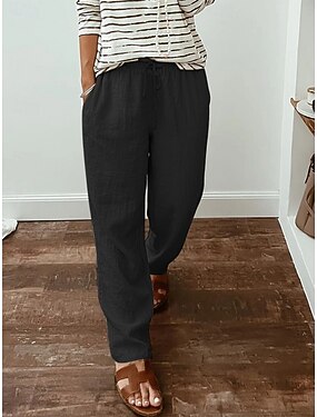 Damen Leinenhosen Hose Freizeithose Sommerhose Urlaub Mode Basic Knöchellang Mittlere Taillenlinie Einfach Kordelzug Elastischer Bund Gerader Schnitt Leicht Bequem Atmungsaktiv Unelastisch Täglich