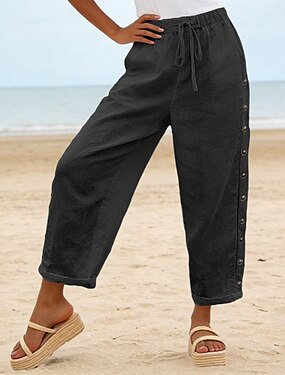 Damen Baumwolle Hose Sommerhose Strandhose Urlaub Mode Alltagstauglich Knöchellang Hohe Taille Einfach Elastischer Bund Seitenknopf Leicht Bequem Atmungsaktiv Unelastisch Streetwear Strand Ferien