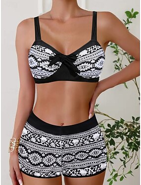 Damen Bikini 2-teiliges Badeanzug Boho Shorts Slim Rückenfreier Urlaub Strandbekleidung Farbblock Geometrisch V-Ausschnitt Ärmelloser Badeanzug
