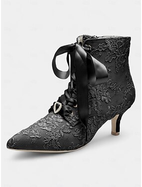 Damen Vintage Spitzenstiefeletten mit Satinbandschnürung und Kitten Heels – elegante Brautschuhe für Hochzeiten und viktorianisch inspirierte Events