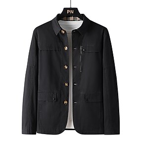 Herren Leichte Jacke Sommerjacke Einsatzjacke übergangsjacke Büro & Karriere Alltagskleidung Warm Tasche Herbst Winter Einfarbig Stilvoll Aufwärmen Stehkragen Regulär Schwarz Rote Khaki Dunkelblau