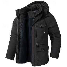 Herren Wintermantel Winterjacke Fleecejacke Arbeitsjacke Straße Lässig Winddicht Warm Tasche Herbst Winter Ganzjahres Lässig Taktisch Mit Kapuze Schwarz Khaki Armeegrün Jacken