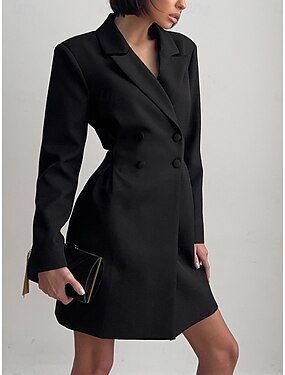 Damen Minikleid Arbeitskleidung blazerkleid Elegant Mode Modern Outdoor Büro Ferien Normale Passform Einfach Langarm Hemdkragen Schwarz Weiß Sommer Frühling