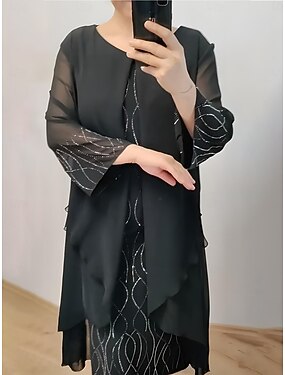 Damen Knielanges Kleid Freizeitkleid Kleid-Set Chiffonkleid Elegant Lässig Täglich Wochenende Lässiger Schnitt Einfach Langarm Rundhalsausschnitt Hellrosa Schwarz Wein Marineblau Sommer Frühling