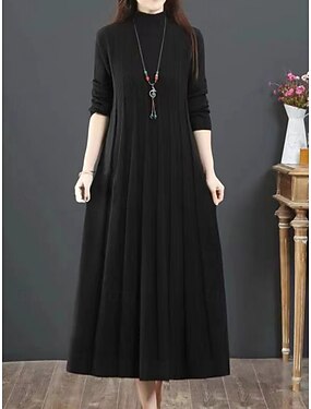Damen Langes Kleid Maxikleid schwarzes kleid Freizeitkleid Winterkleid Cocktailkleid Mode Basic Klassisch Täglich Outdoor Urlaub Lässiger Schnitt Langarm Stehkragen Blau Schwarz Rosa Braun Herbst