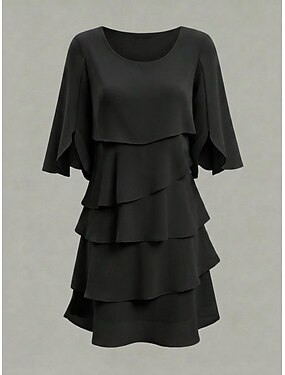 Damen Minikleid Chiffonkleid Kleid für Hochzeitsgäste Stufenkleid Mode Modern Outdoor Ferien Ausgehen Normale Passform Einfach Halbarm Rundhalsausschnitt Blau Schwarz Rosa Frühling Herbst