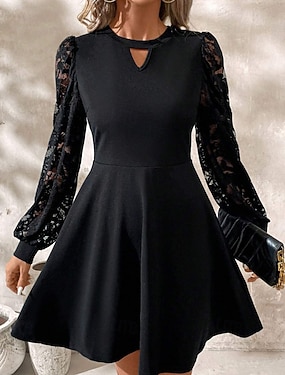 Damen Minikleid schwarzes kleid Spitzenkleid Elegant Modern Laternenärmel Outdoor Geburtstag Cocktailparty Schlank Einfach Langarm Rundhalsausschnitt Schwarz Frühling Herbst