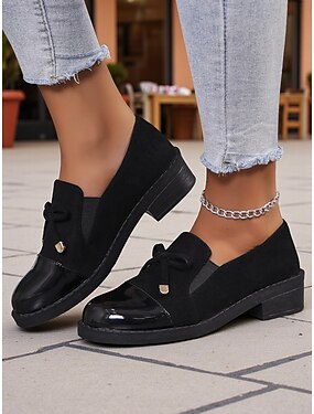 Damen bordeauxfarbene Wildleder- und Lackleder Slipper – Niedriger Absatz mit Schleifenbindung für lässige Ausflüge Büroarbeit und herbstlichen Streetstyle