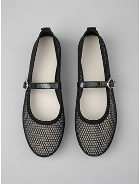 Beigefarbene Mary-Jane-Ballerinas aus Mesh für Damen – atmungsaktive, leichte Komfortschuhe mit verstellbarem Riemen und rutschfester Sohle, lässige Schuhe für Reisen, Gartenarbeit und den Alltag