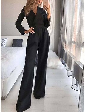 Damen Normal Jumpsuit Elegant Feste Farbe Langarm V Ausschnitt Tasche Hohe Taillenlinie B¨¹ro Arbeit Regular Fit Schwarz Weiß Wein Sommer