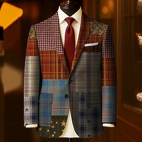Herren Karomuster Blazerjacke Mantel Bequem Atmungsaktiv Künstlerisch Lässig Täglich 3D-Druck Knöpfe Mehrere Taschen Ganzjahres Fallendes Revers Langarm Rote