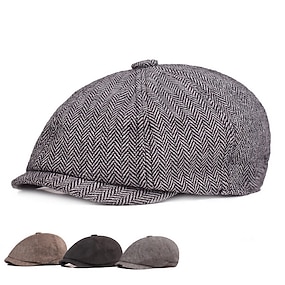 Herren Schiebermütze Schwarz Braun Baumwolle und Leinen Strassenmode Stilvoll 1920er Jahre Mode Outdoor Täglich Ausgehen Glatt Warm