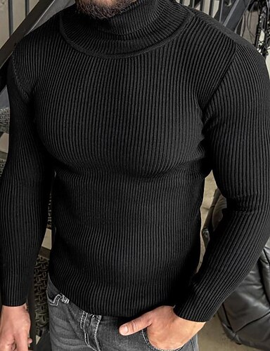 Herren Pullover Strickpullover Gerippt Stricken Normale Oberteile Gestrickt Einfach Rollkragen Mode Basic Urlaub Alltagskleidung Bekleidung Herbst Winter Wein Schwarz M L XL