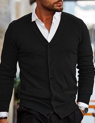 Herren Strickjacke Kurzer Pullover Strickpullover Gerippt Stricken Normale Oberteile Knöpfe Jacquard Einfach V Ausschnitt Mode Klassisch Urlaub Alltagskleidung Bekleidung Herbst Winter Schwarz