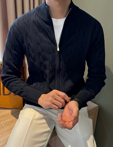 Herren Zopfmusterpullover Pullover Strickjacke Reißverschluss-Pullover Zopfmuster Stricken Normale Oberteile Reißverschluss Gestrickt Einfach Stehkragen Urlaub Mode Lässig Alltagskleidung Bekleidung