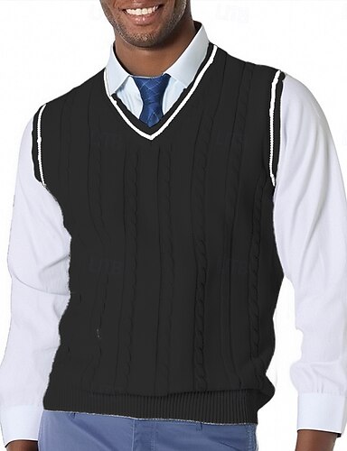 Herren Pullunder Kleid Pullover Pullover Weste Strickpullover Gerippt Zopfmuster Stricken Normale Oberteile Gestrickt Einfach V Ausschnitt Mode Lässig Urlaub Alltagskleidung Bekleidung Herbst Winter