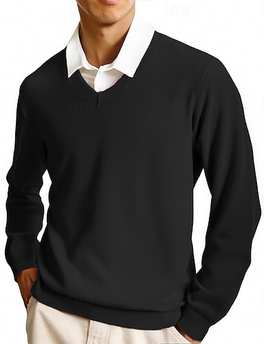 Herren Kleid Pullover Pullover Gerippt Stricken Normale Oberteile Gestrickt Schmale Passform Einfach V Ausschnitt Klassisch & Zeitlos Schick & Modern Arbeit Alltagskleidung Bekleidung Winter Schwarz