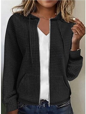 Damen Freizeitjacke Kapuzenjacke Bequem Atmungsaktiv Reißverschluss Tasche Vollreißverschluss Lässig Einfach Urlaub Straße Lässig Alltagskleidung Reisverschluss Regulär Mit Kapuze Normale Passform