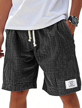 Herren Leinenshorts Sommershorts Kordelzug Elastischer Bund Fronttasche Einfach Komfort Weich Knielang Lässig Täglich Mode Klassicher Stil Schwarz Weiß
