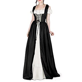 Retro Vintage Mittelalterlich Renaissance Keltisches Kleid Wikinger Elfen Kostüm Damen Keltisch Seeräuber Fantasie Halloween Karneval Maskerade LARP Erwachsene Kleid