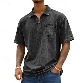 Herren Poloshirts Acid-Wash-Shirt Lässig Ferien Umlegekragen Viertelreißverschluss Kurzarm Mode Basic Einfarbig Reißverschluss Vintage-Stil Sommer Frühling Blau Dunkelgrün Schwarz Rote Marineblau