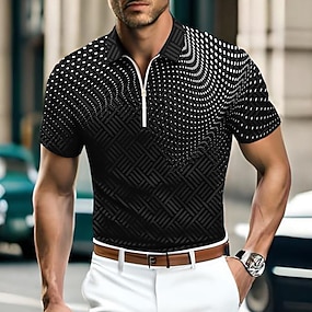 Herren Tupfen Poloshirts mit Reißverschluss Golfshirt Kurzarm Polo-Shirts Hemden mit Kragen Business-Casual Arbeitskleidung Formelle Kleidung Festivalkleidung 3D-Druck Viertelreißverschluss-Poloshirt