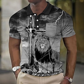 Herren Löwe Grafikdrucke Kreuz Waffel-Poloshirts Poloshirts Revers-Polo Polo mit Knopfleiste Golfshirt Kurzarm Hemd Umlegekragen Outdoor Straße Hellgelb Schwarz Gelb Rote Blau Druck Bekleidung Mode