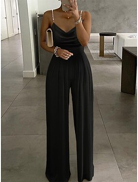 Damen Normal Jumpsuit Elegant Feste Farbe Gurt V Ausschnitt Rückenfrei Urlaub Strasse Regular Fit Schwarz Weiß Sommer