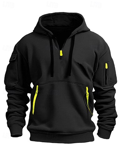 Herren Kapuzensweatshirt Wanderspitze Sport Hoodie Langarm Mit Kapuze T-Shirt Oberteil Außen Thermowarm Leicht Winter Viertelreißverschluss Polyester Schwarz Armeegrün Marinenblau Jagd Angeln Laufen