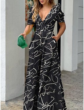 Damen Normal Jumpsuit Aktiv Blumen Kurzarm V Ausschnitt Hohe Taillenlinie Urlaub Täglich Regular Fit Schwarz Weiß Blau Sommer
