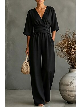 Damen Normal Overall Aktiv Einfarbig Halbarm Weites Bein V Ausschnitt Täglich Strand Lässiger Schnitt Blau Schwarz Rosa Sommer