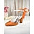 Damen Pumps aus orangefarbenem Satin mit Blockabsatz und Perle &Knöchelriemen aus Band – elegante High Heels mit spitzer Spitze für Hochzeiten, Partys &Abendveranstaltungen