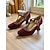 Burgunderrote Mary-Jane-Pumps aus Lacklederimitat mit dickem Absatz für Damen – lässige Schuhe im Vintage-Stil der 1950er fürs Büro, den Alltag und Weihnachten