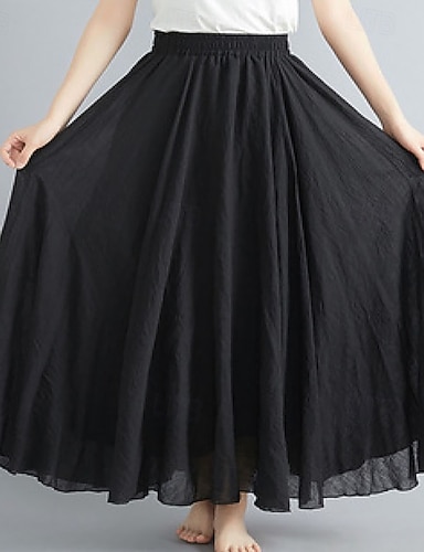 Damen Mode Lässig Maxi Mittlere Taille Röcke Einfarbig Gerafft Rüsche Täglich Urlaub Schwarz Wein Purpur Braun Frühling & Sommer Baumwoll-Leinen