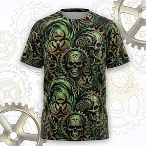 Halloween Herren Schädel T Shirt Kurzarm T-Shirt 3D-Druck Rundhalsausschnitt Hemd Gotisch Straße Dunkle Party Grün Ganzjahres Bekleidung S M L XL XXL XXXL
