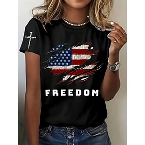 Unabhängigkeitstag patriotisches Damen T-Shirt Grafik Flagge Flagge Vintage stilvoll klassisch Kurzarm Rundhals reguläre Oberteile täglicher Wochenend Druck Blau Schwarz Weiß Rot Grau Sommer Frühling