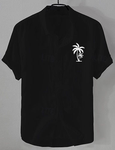 Herren Leinenhemd Minimalistisches Aloha-Shirt Freizeithemd Baumwoll-Leinen-Hemd Knopfhemd Kokospalme Urlaub Straße Schwarz Weiß Rosa Dunkelmarine Kurzarm Revers Sommer Bekleidung Button-Down