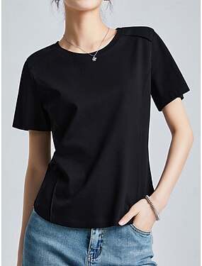 Damen T Shirt Druck Einfarbig Einfach Stilvoll Lässig Kurzarm Rundhalsausschnitt Normale Oberteile Täglich Schwarz Weiß Wein Marineblau Himmelblau Sommer Frühling