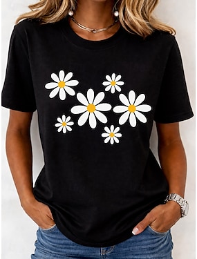 Damen T Shirt Druck Blumen Grafik Mode Klassisch Kurzarm Rundhalsausschnitt Normale Oberteile Lässig Täglich Wochenende Blau Weiß Grün Schwarz Sommer Frühling