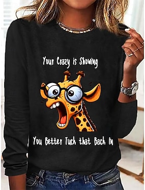 Damen T Shirt Druck Grafik Tiermotiv Giraffe Vintage Mode Stilvoll Kurzarm Langarm Rundhalsausschnitt Rundhals Normale Oberteile Täglich Wochenende Blau Schwarz Weiß Rosa Khaki Sommer Frühling Herbst