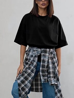 Damen Übergroße T-Shirt Sport-T-Shirt Einfarbig Stilvoll Klassisch Lässig Kurzarm Rundhalsausschnitt Rundhals Lange Oberteile Täglich Fitnessstudio Sport Schwarz Sommer Frühling