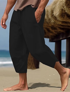 Herren Leinenhosen Caprihose Sommerhose Kordelzug Elastischer Bund Mehrere Taschen Einfach Komfort Atmungsaktiv Wadenlang Lässig Täglich Outdoor Urlaub Mode Blau Schwarz Unelastisch