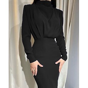 Damen Midikleid schwarzes kleid Elegant Mode Modern Täglich Ausgehen Wochenende Normale Passform Einfach Langarm Hoher Ausschnitt Schwarz Rosa Wein Dunkelblau Frühling Herbst Winter