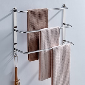 Bad dreilagiges Regal mit Haken Edelstahl-Multifunktions-Handtuchhalter Silber poliert und Nickel gebürstet 1St