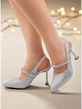 Strassbesetzte Slingback-Pumps für Damen – elegante Stilettos mit spitzer Zehenpartie für Cocktailpartys &Abendveranstaltungen