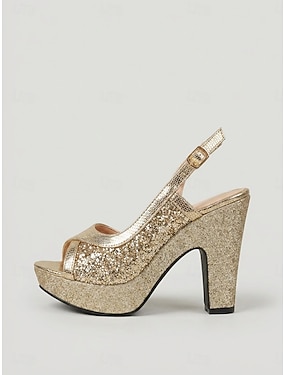 Goldene Plateau-Sandalen für Damen – glitzernde, klobige Sandalen mit offener Zehenpartie für Cocktailpartys und Abendveranstaltungen &Abend in der Stadt