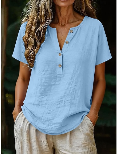 Damen Bluse Knöpfe Einfarbig Stilvoll Lässig Kurzarm V Ausschnitt Normale Oberteile Täglich Blau Schwarz Weiß Braun Aprikose Sommer Frühling