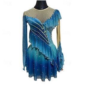 Eiskunstlaufkleid Damen Mädchen Eislaufen Kleid Blau Patchwork Netzstoff Hohe Elastizität Training Wettbewerb Eiskunstlaufkleidung Klassisch Kristall / Strass Langarm Eislaufen Eiskundstlauf